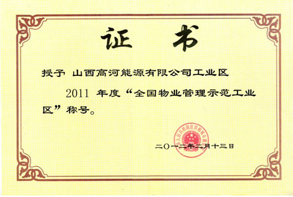 高河煤礦項目獲“全國物業(yè)管理示范工業(yè)區”稱(chēng)號